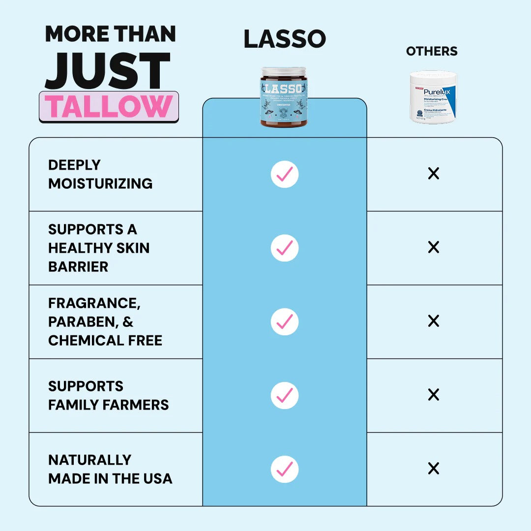 Experience the natural, nourishing power of Lasso Tallow. Smooth, hydrate, and